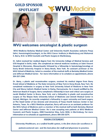 WVU welcomes oncologist & plastic surgeon