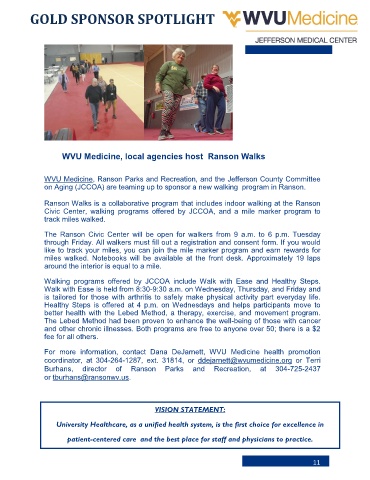 on Aging (JCCOA) are teaming up to sponsor a new walking program in Ranson.