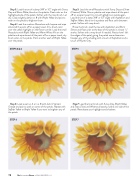 over the yellow highlight on the flower center. Load the small Mezzaluna with Bright Yellow and Warm White. Mix on the palette and wipe almost all the paint off on a paper towel; dry- brush color on the petals. Paint another wash of Bright Yellow over the petals.