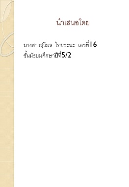 น าเสนอโดย นางสาวสุวิมล ไทยชะนะ เลขที่16 ชั้นมัธยมศึกษาปีที่5/2