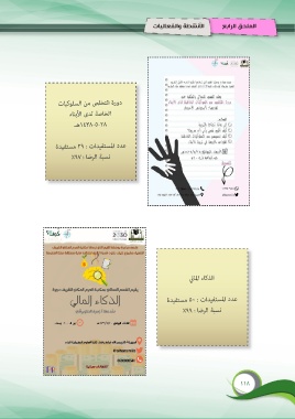 الأنشطة والفعاليات الملحق الرابع دورة التخلص من السلوكيات الخاصة لدى الأبناء 1438-5-28هـ عدد المستفيدات 29 :مستفيدة نسبة الرضا %97 : الذكاء المالي عدد المستفيدات 50 :مستفيدة نسبة الرضا %99 : 118