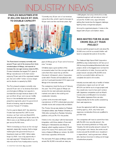 non-agri segment," Chhabria told in an The domestic PVC pipes & fittings market is infrastructure projects.