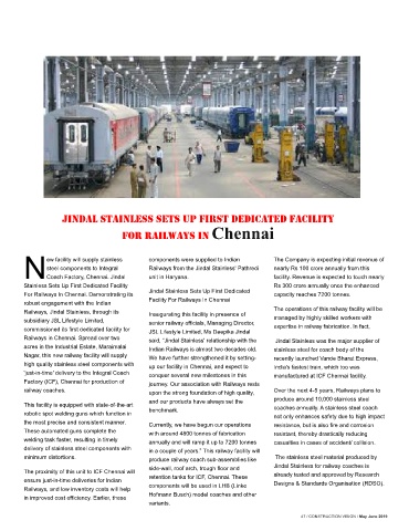 delivery of stainless steel components with in a couple of years.” This railway facility will