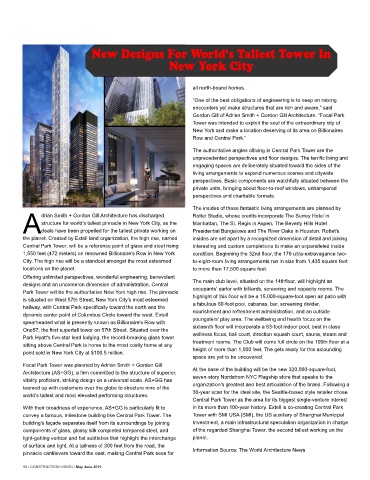 convey a famous, milestone building like Central Park Tower. The Tower with SMI USA (SMI), the US auxiliary of Shanghai Municipal