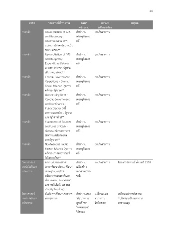 สาขา รายการสถิติทางการ กรม/ สถานะ เหตุผล