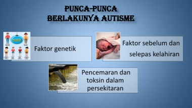 Punca-punca berlakunya Autisme Faktor sebelum dan Faktor genetik selepas kelahiran Pencemaran dan toksin dalam persekitaran