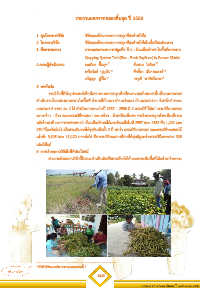 เกษตรกร 5 รายๆ ละ 2 ไร่ ดำเนินงานระหว่างปี 2557 – 2558 มี 2 กรรมวิธี ได้แก่ กรรมวิธีเกษตรกร