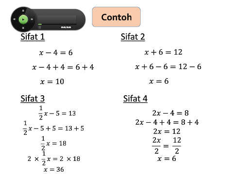 Contoh Sifat 1 Sifat 2 − 4 = 6 + 6 = 12 − 4 + 4 = 6 + 4 + 6 − 6 = 12 − 6 = 10 = 6 Sifat 3 Sifat 4 1 − 5 = 13 2 − 4 = 8 2 1 2 − 4 + 4 = 8 + 4 − 5 + 5 = 13 + 5 2 2 = 12 1 2 12 = 18 = 2 2 2 1 2 × = 2 × 18 = 6 2 = 36