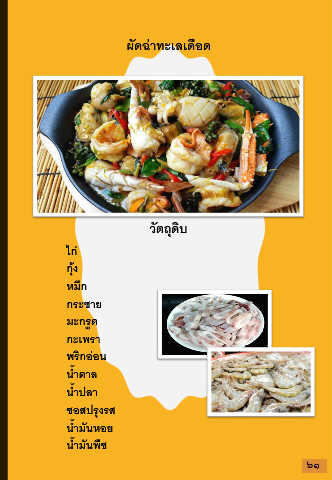 ผัดฉ่าทะเลเดือด วัตถุดิบ ไก่ กุ้ง หมึก กระชาย มะกรูด กะเพรา พริกอ่อน น ้าตาล น ้าปลา ซอสปรุงรส น ้ามันหอย น ้ามันพืช ๖๑