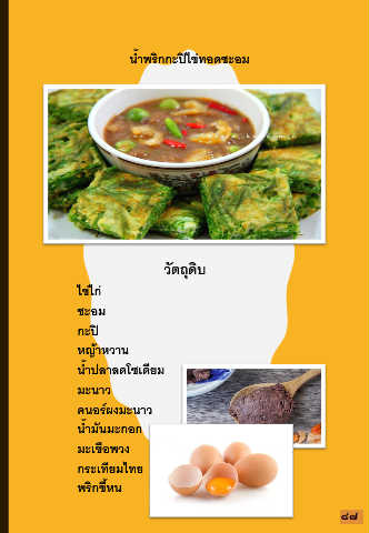 น ้าพริกกะปิไข่ทอดชะอม วัตถุดิบ ไข่ไก่ ชะอม กะปิ หญ้าหวาน น ้าปลาลดโซเดียม มะนาว คนอร์ผงมะนาว น ้ามันมะกอก มะเขือพวง กระเทียมไทย พริกขี้หน ๘๗