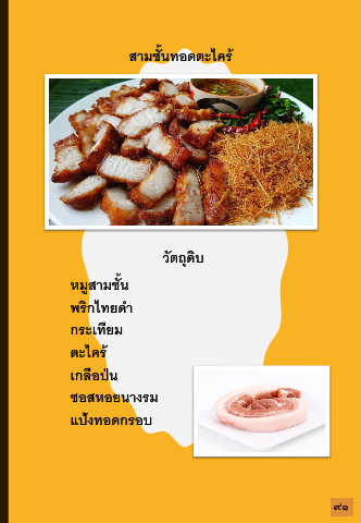 สามชั้นทอดตะไคร้ วัตถุดิบ หมูสามชั้น พริกไทยด า กระเทียม ตะไคร้ เกลือป่น ซอสหอยนางรม แป้งทอดกรอบ ๙๑