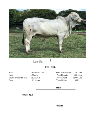Raza                        : Brahman Gris                      Peso  Nacimiento   :  70    Lbs.