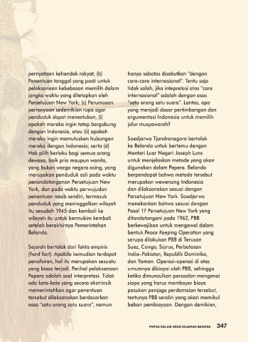 metode musyawarah. unsur-unsur yang ditunjuk oleh PBB, penentuan nasib sendiri, termasuk Persetujuan New York. Soedjarwo