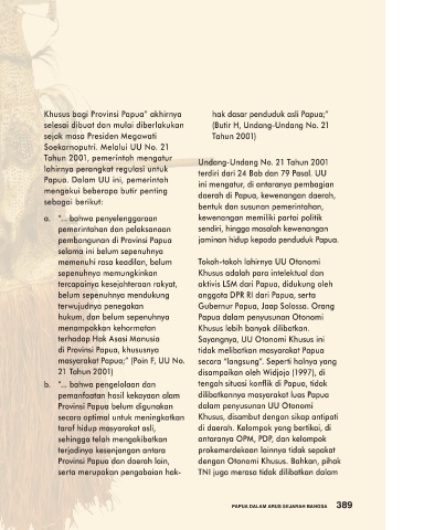 kepada para tokoh Papua dan 2009:110-111). hukum, dan belum sepenuhnya Papua dalam penyusunan Otonomi