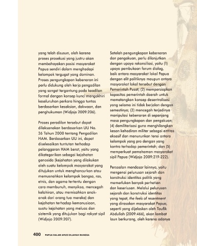 membahayakan posisi masyarakat dengan upaya rekonsiliasi, yaitu (1) bahwa sejarah yang telah diluruskan untuk memecahkan masalah Papua.