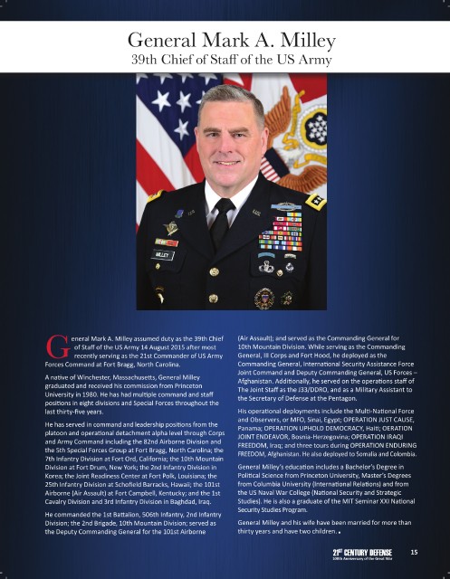 eneral Mark A. Milley assumed duty as the 39th Chief (Air Assault); and served as the Commanding General for