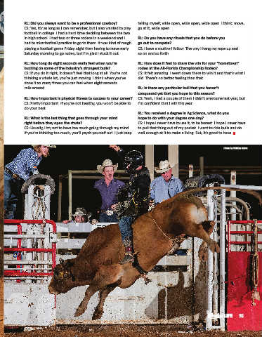 RL: Did you always want to be a professional cowboy? telling myself, wide open, wide open, wide open. I think: move,