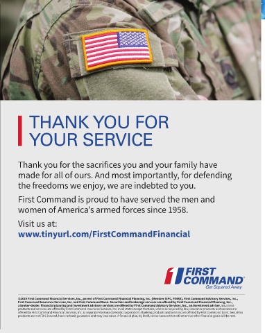 ©2019 First Command Financial Services, Inc., parent of First Command Financial Planning, Inc. (Member SIPC, FINRA), First Command Advisory Services, Inc.,