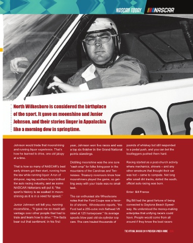 Distilling moonshine was the one sure Racing started as a post-church activity