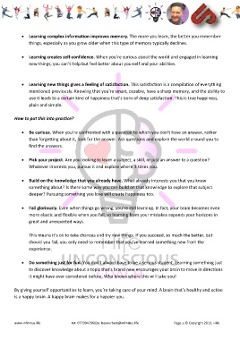 • Learning new things gives a feeling of satisfaction. This satisfaction is a compilation of everything