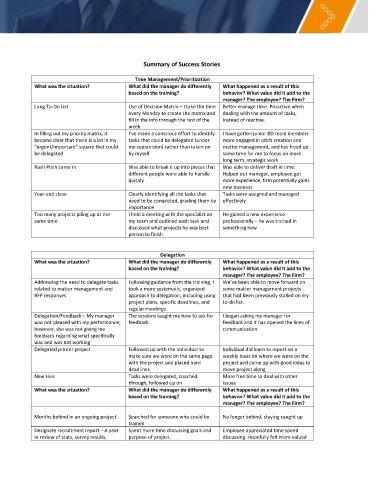Delegation/Feedback – My manager The sessions taught me how to ask for I began asking my manager for
