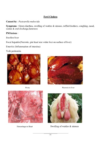 Hemorrhage in Heart Swolling of wattles & sinuses
