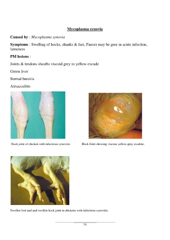 Symptoms : Swelling of hocks, shanks & feet, Faeces may be gree in acute infection,