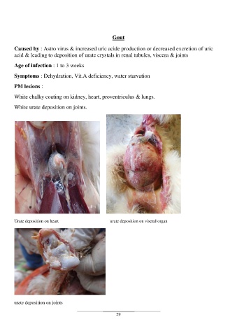 White chalky coating on kidney, heart, proventriculus & lungs.