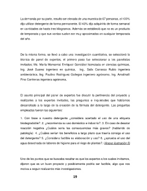 desarrollado a lo largo de la creación de la fórmula del detergente. Las preguntas