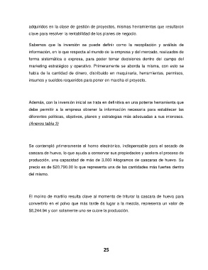 producción, una capacidad de más de 3,000 kilogramos de cascaras de huevo. Su