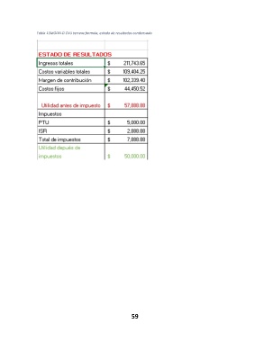 Tabla 13MODELO CVU tercera formula, estado de resultados condensado 59