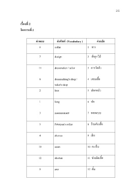 คําตอบ คําศัพท (Vocabulary ) คําแปล