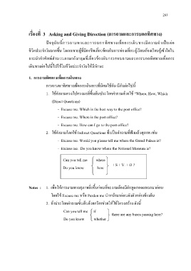 Notes : 1. เพื่อใหการถามทางสุภาพยิ่งขึ้นกอนที่จะถามตองมีคําพูดสอดแทรกมากอน