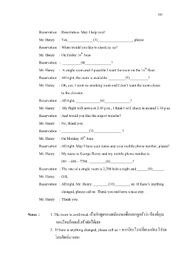 Notes : 1. The room is confirmed. เปนคําพูดของพนักงานเพื่อบอกลูกคาวา หองที่คุณ