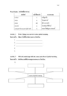 กิจกรรมที่ 5 เติมขอความที่เปนสาเหตุและผลของภาวะโลกรอน