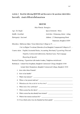 Activity 2 Read the following RESUME and then answer the questions which follow.