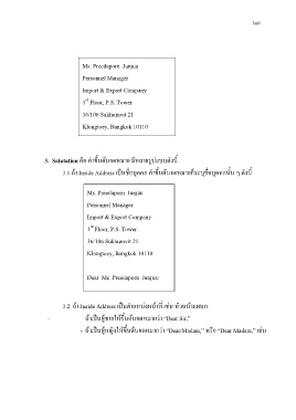 3.1 ถา Inside Address เปนชื่อบุคคล คําขึ้นตนจดหมายก็ระบุชื่อบุคคลนั้น ๆ ดังนี้