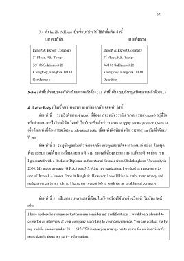 3.4 ถา Inside Address เปนชื่อบริษัท ใหใชคําขึ้นตน ดังนี้
