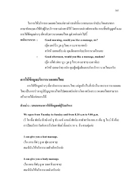 ในการใหบริการนวดแผนไทยแกชาวตางชาตินั้น เราสามารถ นําประโยคสนทนา