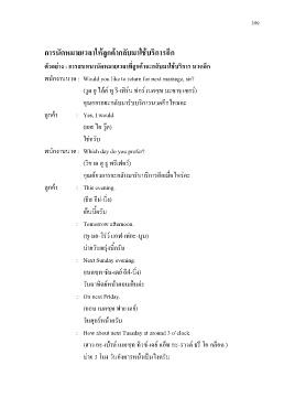 ตัวอยาง : การสนทนานัดหมายเวลาที่ลูกคาจะกลับมาใชบริการ นวดอีก