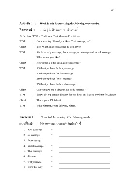 At the Spa (TTM = Traditional Thai Massage Practitioner)