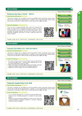 This is a kind of recycled polyester fiber, made from recycled PET                                     Yarns, Fibers and Fabrics