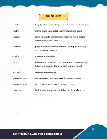 alveolus : tempat pertukaran gas oksigen dan karbon dioksida di paru-paru.