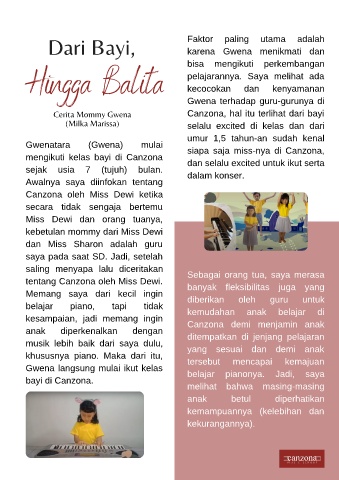 Gwena langsung mulai ikut kelas belajar pianonya. Jadi, saya