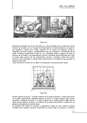 que percibe a través de la rejilla, trazando en su dibujo los ángulos, curvas y