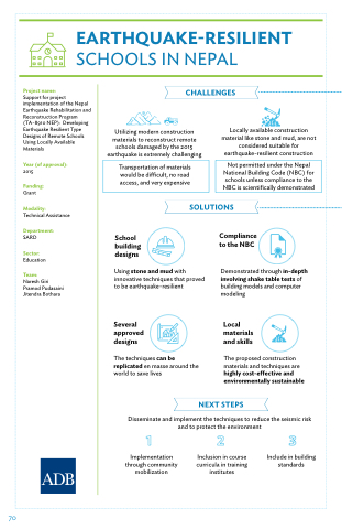 Support for project implementation of the Nepal Earthquake Rehabilitation and Reconstruction Program (TA-8910 NEP): Developing Earthquake Resilient Type Designs of Remote Schools Using Locally Available Materials