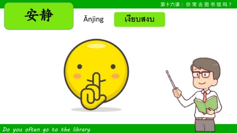 第十六课 :你 常 去 图 书 馆 吗 ? 安静 Ānjìng เงียบสงบ Do you often go to the library