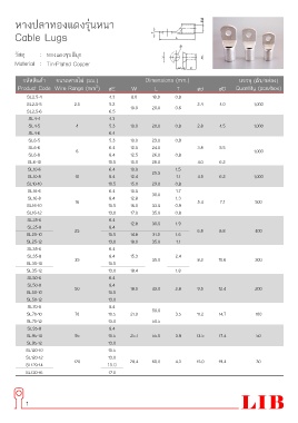 รหัสสินค้า ขนาดสายไฟ (มม.) Dimensions (mm.) บรรจุ (ตัว/กล่อง)