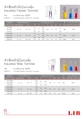 รหัสสินค้า ขนาดสายไฟ (มม.) Dimensions (mm.) สี บรรจุ (ตัว/กล่อง)
