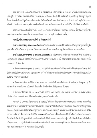 เฉพาะบุคคล และเปนปจจัยที่ทําใหบุคลิกภาพแตกตางกันนอกจากนี้ ออลพอรตยังแบงบุคลิกภาพออกเปน
